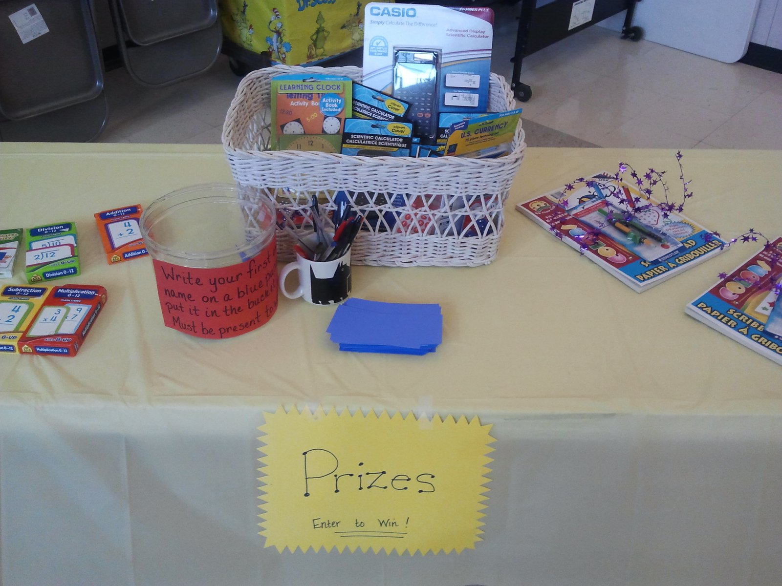 Math Medley Family Math Night Published September 27, 2012 at 2560 × 1920 in Room Set-Up for Your Family Math Night Event ← Previous / the raffle prize table at family math night